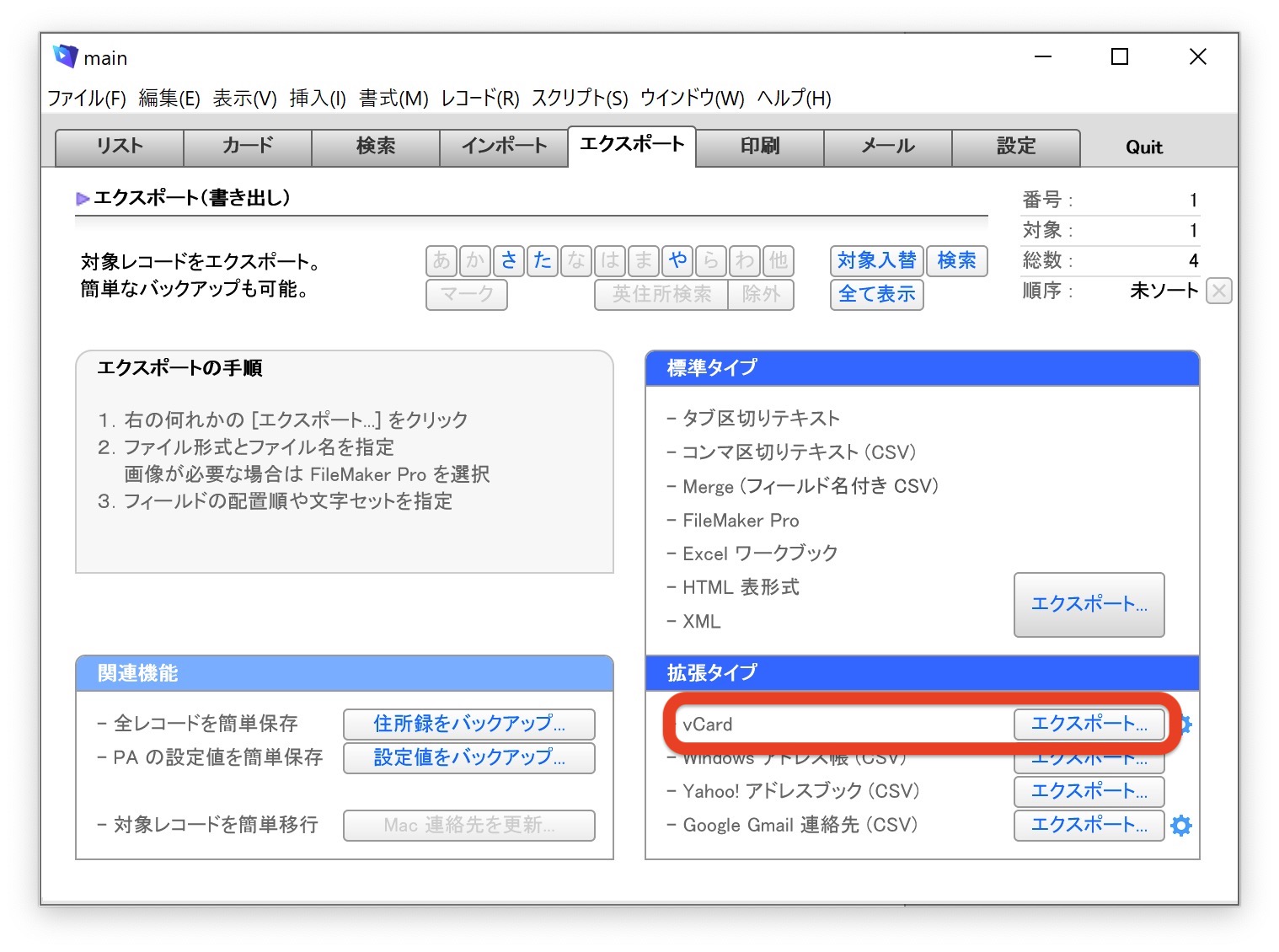 2. vCard ファイルをエクスポート